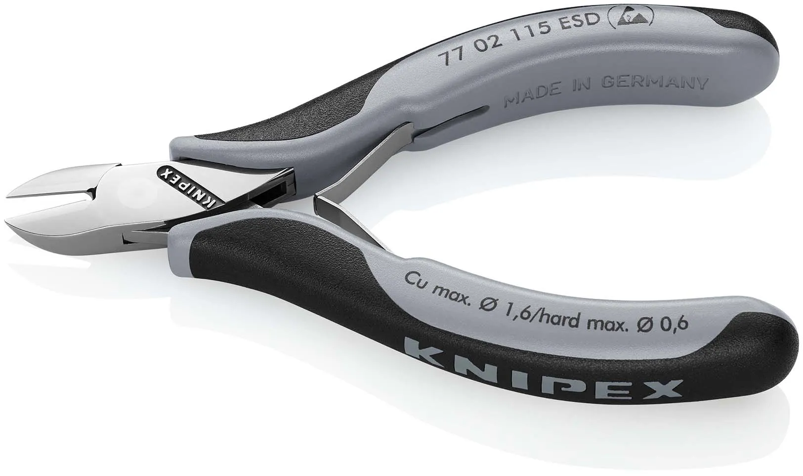KNIPEX 77 02 115 ESD Electronics Diagonal Cutters ESD with box joint with multi-component grips 117 mm