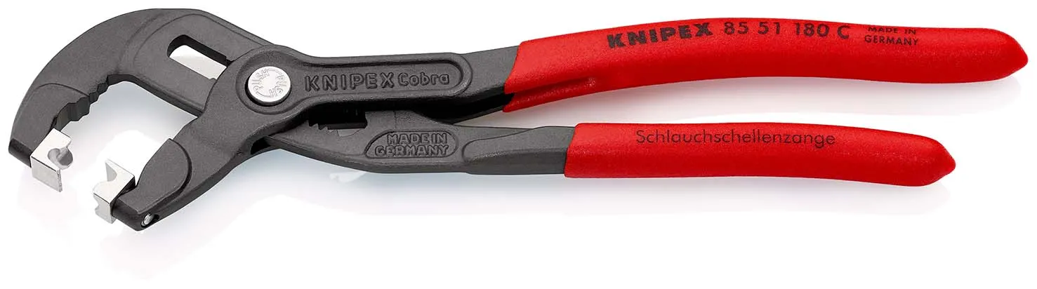 KNIPEX 85 51 180 C Hose Clamp Pliers for Click clamps with non-slip plastic coating grey atramentized 180 mm