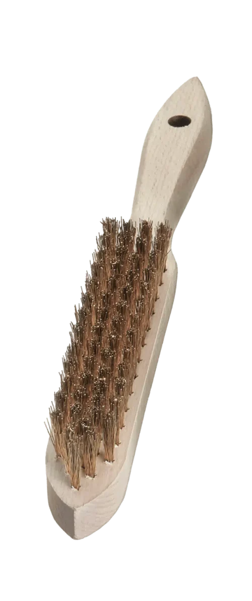 The Hand Brush with 4 Rows of Crimped Brass Wire (0.35mm) is a durable and efficient cleaning tool designed for delicate surfaces like aluminum and copper. The crimped brass wire enhances cleaning power by increasing surface area, effectively removing rust, paint, and dirt without causing damage. Its ergonomic handle provides comfort and control, making it ideal for industrial, automotive, and workshop use. Perfect for light to medium-duty tasks, this brush offers reliable, long-lasting performance.
